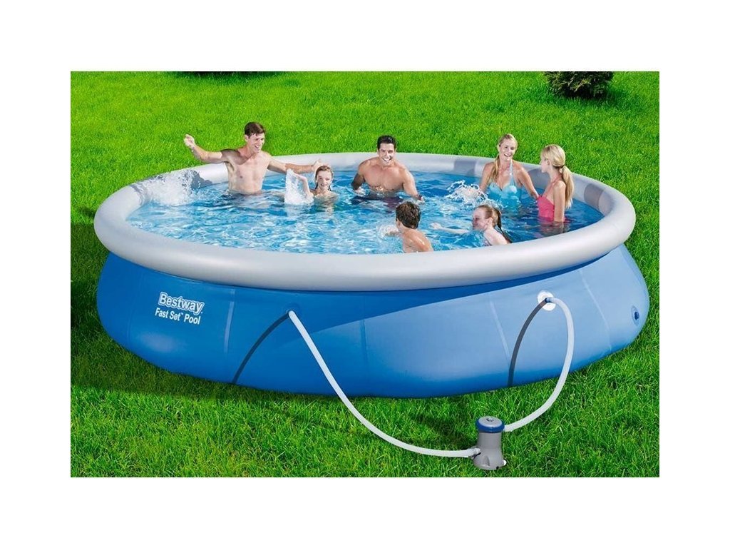 Kruhový nafukovací bazén ideální do vaší zahrady Nyní již nebudete muset chodit do přeplněných městských bazénů, protože tento bazén si můžete umístit ve své zahradě na libovolném slunném místě