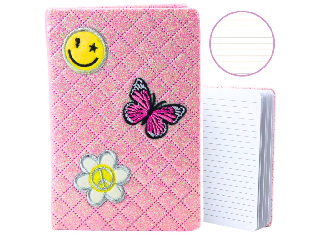Zápisník Linkovaný Brokátový Nálepky Růžový B6 80 Listů
