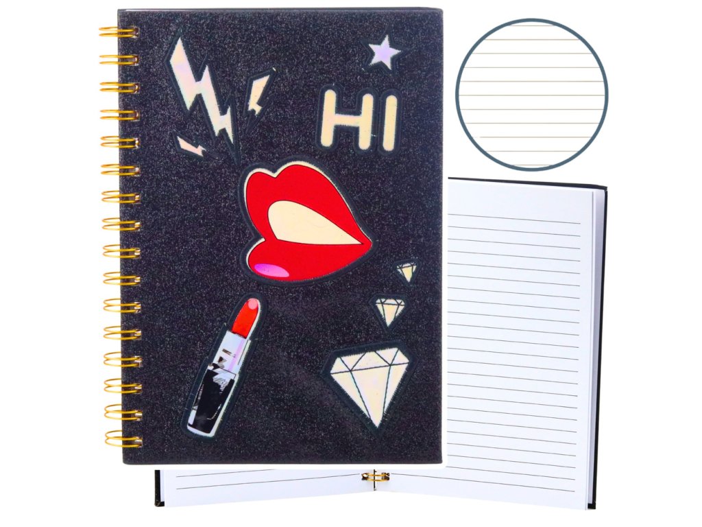 jako jsou rty, diamanty, blesky nebo rtěnka dodává sešitu originální a moderní vzhled