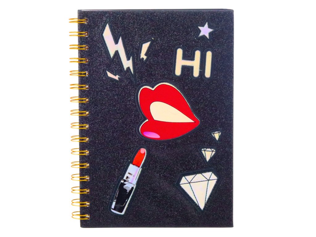 Zápisník Sešit Linkovaný Nášivky Rty Rtěnka Třpytivý Černý A5 80 Listů