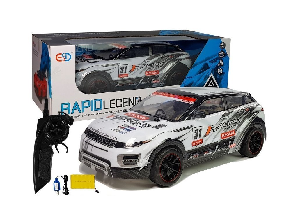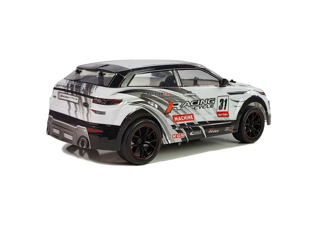 Sportovní dálkově ovládané auto bílé Dálkově ovládané auto v barevném sportovním designu Představený model byl vyroben společností v měřítku 1:10, díky čemuž vypadá neuvěřitelně realisticky