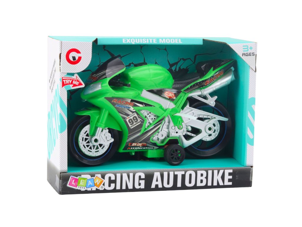 - Závodní Motocykl Hračka Pohon Světla Zvuky v atraktivní zelené barvě!