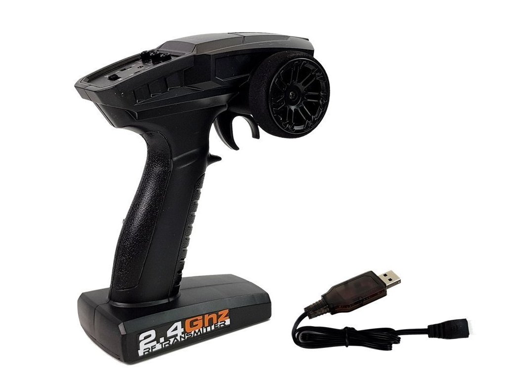 - Sada obsahuje pohodlný a přesný ovladač pracující na frekvenci 2,4 GHz bez rizika rušení, což umožňuje závodění v početnější skupině