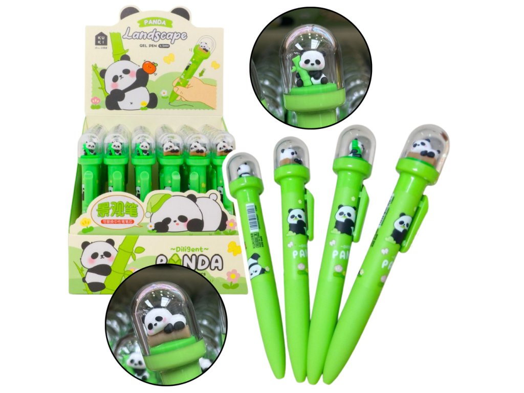 - Gelové pero s pandou v kopuli představuje spojení praktičnosti a estetiky