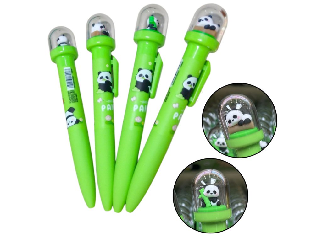 - Toto zelené gelové pero s roztomilou pandou v průhledné kopuli je nejen efektivním nástrojem pro psaní, ale také vtipným a stylovým doplňkem pro školní pouzdro nebo kancelářský stůl