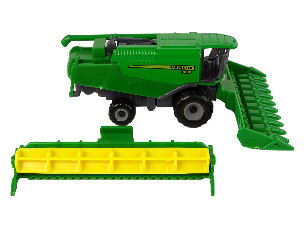 - Zelený žlutý zemědělský kombajn s přídavným zařízením Tento vozidlo je roztomilá a interaktivní hračka, která dětem jistě přinese spoustu radosti při hraní na farmě!