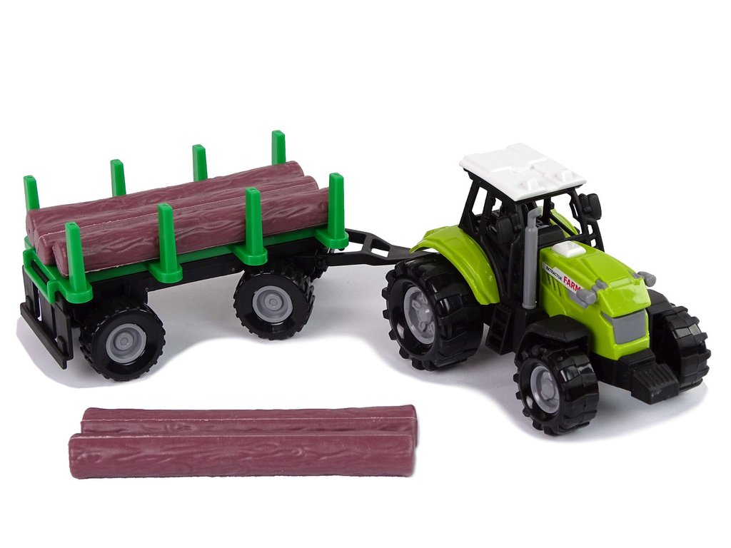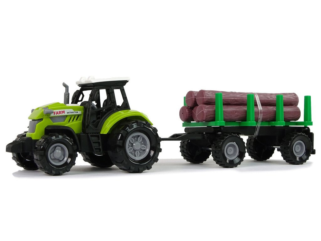 - ZELENÝ TRAKTOR S PŘÍVĚSEM NA BALÍKY DŘEVA Traktor s přívěsem je ideální hračkou pro malé milovníky zemědělství, kteří se chtějí cítit jako opravdoví farmáři