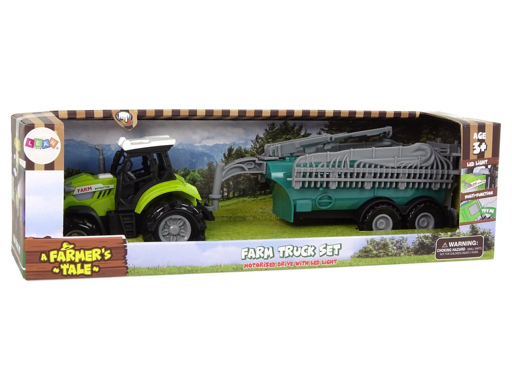 Sada obsahuje traktor v klasické zelené barvě a odnímatelný postřikovač, který umožňuje rozšířit zábavu a hrát si různé scénáře práce na farmě Rozkládací ramena postřikovače umožňují „hračky postřikovat“ větší plochu a zvuk motoru a jízdy dodává každé hře na realističnosti