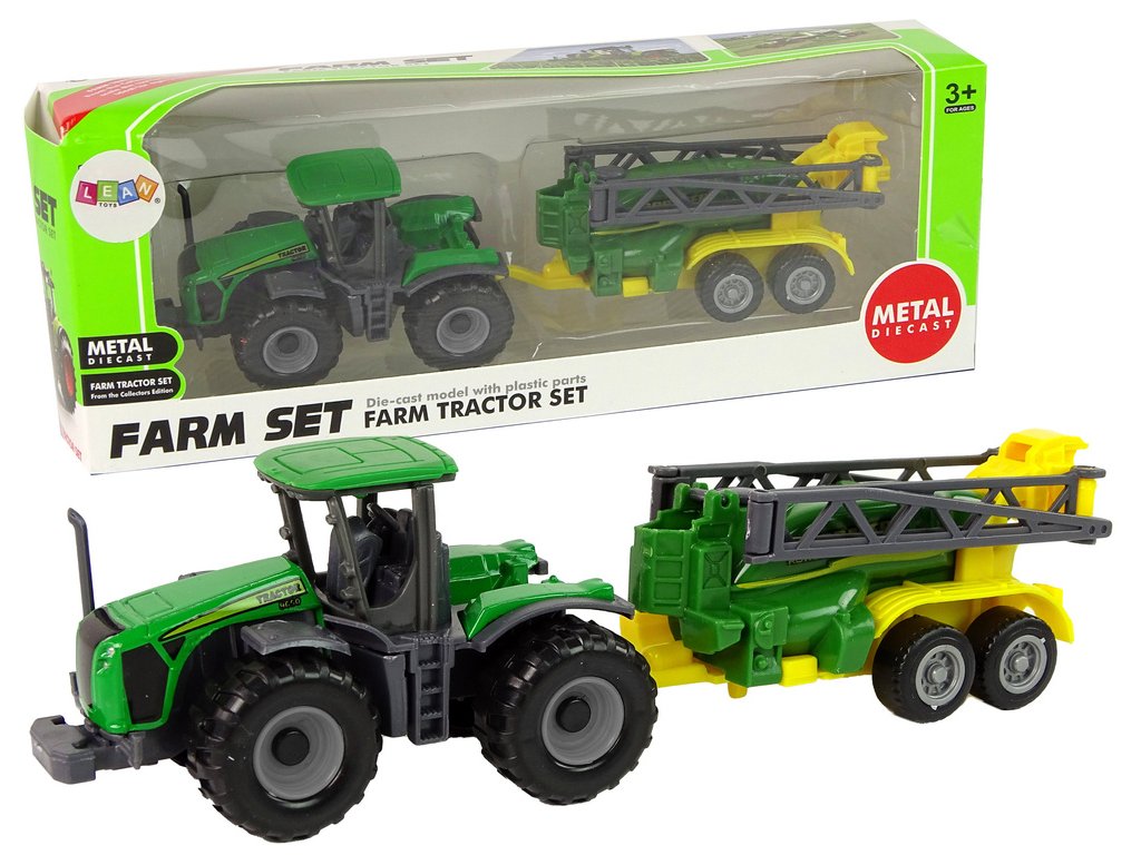 Krátký popis produktu: Zelený zemědělský traktor s postřikovačem pro realistické hraní na farmě, vyrobený z odolného plastu, vhodný pro děti od 3 let.