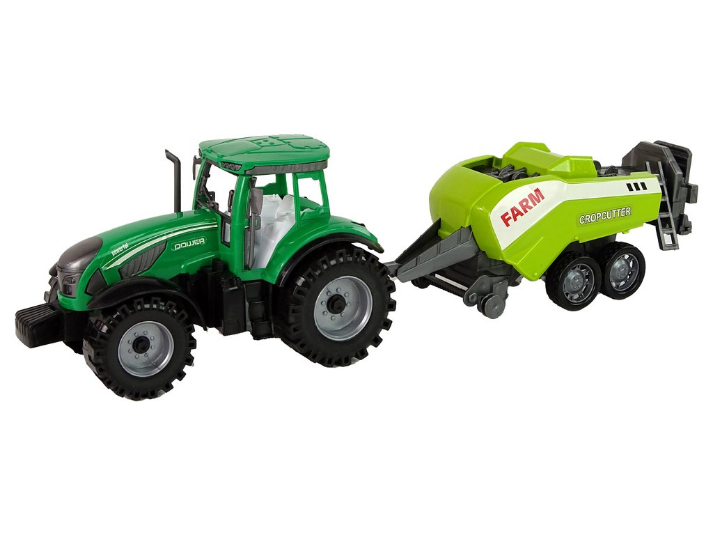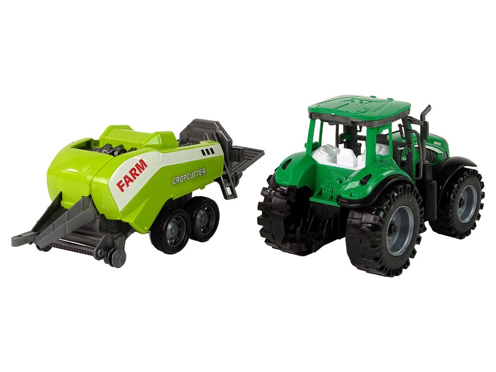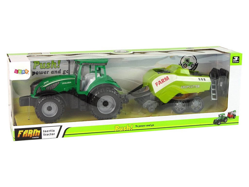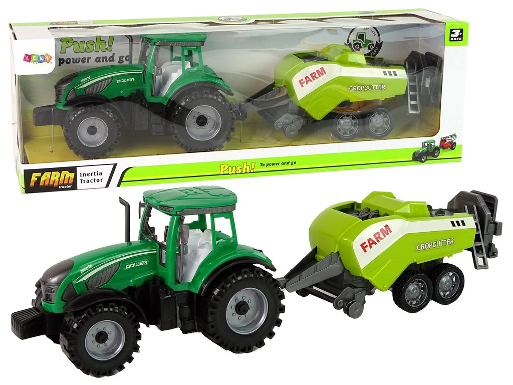- Zelený zemědělský traktor se secím strojem a frikčním pohonem Zelený traktor s odnímatelným secím strojem s frikčním pohonem je jedinečná sada, která malé farmáře přenese do fascinujícího světa venkovského života