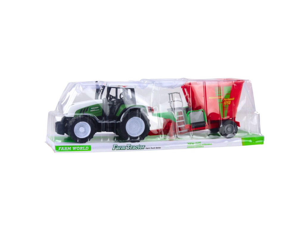 Objevte kouzelný svět hospodářských strojů s naším zeleným traktorem s přívěsem a míchacím zařízením na krmivo. Tento výjimečný model je navržen speciálně pro děti, které se zajímají o venkovský život a milují zemědělské stroje. Všimněte si precizního zpracování, které věrně napodobuje skutečný zemědělský traktor, což zaručuje, že si váš malý farmář zamiluje každou chvíli hry.