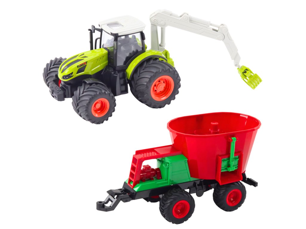 Velký dálkově ovládaný traktor s zemědělskými nástroji – sečkou a otočným chytačem je ideální hračkou pro každé dítě, které sní o vlastním farmářském hospodářství.