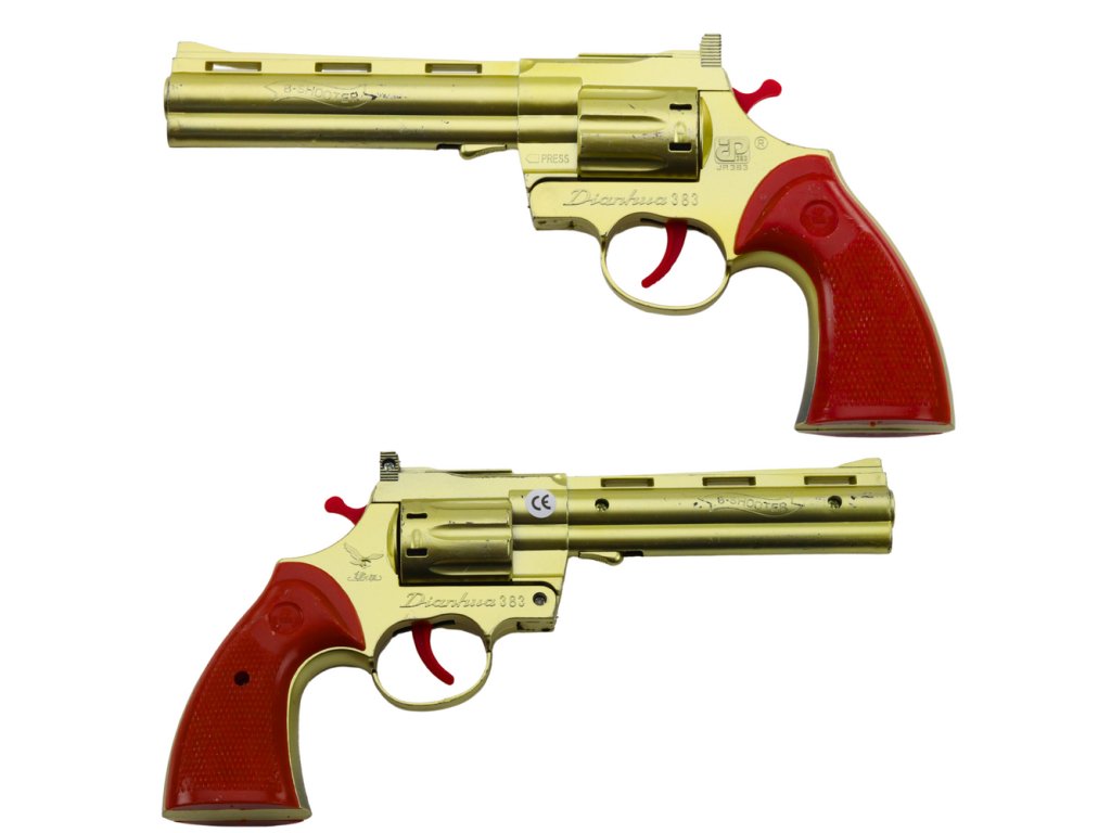 Zlatý revolvér na kapslíky – stylová zlatá hračka, jež je ideální volbou jak pro děti, tak pro dospělé, kteří hledají bezpečný a efektní doplněk ke kostýmu nebo scénické rekvizitě.