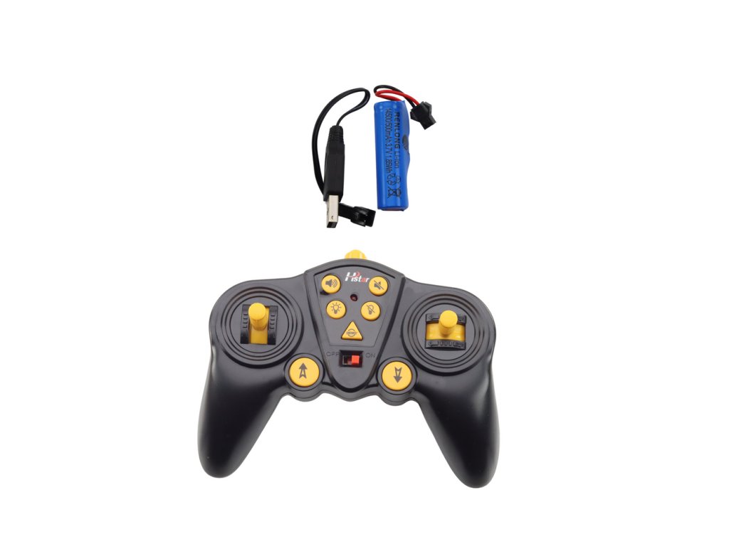 - Vozidlo je vybaveno akumulátorem nabíjeným přes USB, což eliminuje potřebu jednorázových baterií a umožňuje delší zábavu