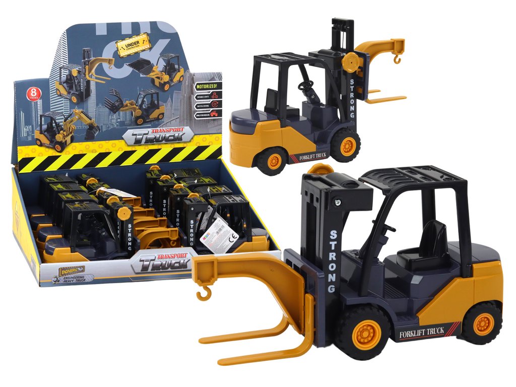 Vysokozdvižný vozík s hákem, nastavitelný frikční pohon, žlutý Vysokozdvižný vozík s hákem je skvělá hračka, která nejen baví, ale také stimuluje představivost a rozvíjí manuální dovednosti dítěte Nastavitelná vidlice s hákem přidává interakci a umožňuje různé scénáře hry, jako je nakládání a vykládání předmětů