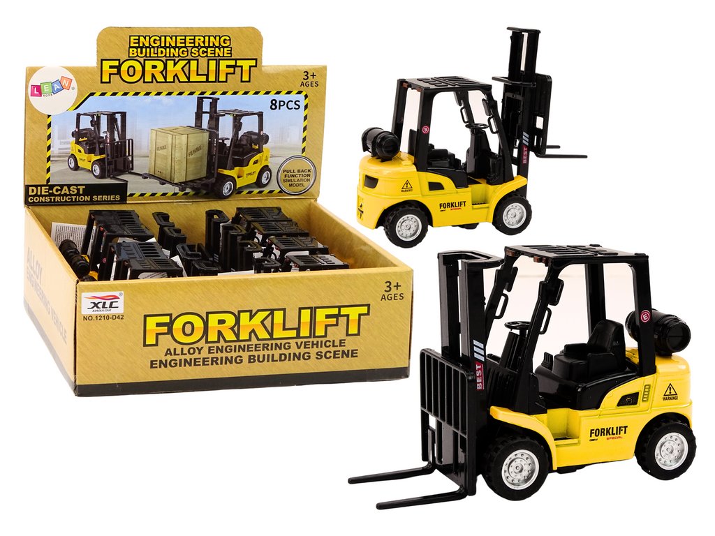 Kovová konstrukce zajišťuje odolnost a frikční pohon dělá hračku snadno ovladatelnou a spolehlivou! ⭐ KLÍČOVÉ VLASTNOSTI PRODUKTU ✅ Realistický vzhled Vysokozdvižný vozík v intenzivní žluté barvě připomíná skutečné stroje, což obohacuje zábavu a rozvíjí představivost