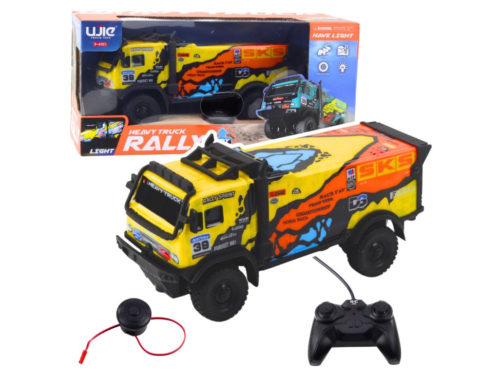 Užijte si nezapomenutelnou zábavu s realistickým zátěžovým RC autem v dynamických barvách – žluté s modrými a oranžovými detaily. Tento zábavný vůz otevírá dveře do světa dobrodružství pro malé fanoušky motorismu, kteří touží po akci.