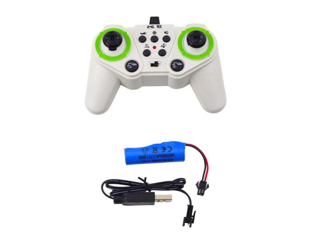 - Obsah balení: RC vyklápěčka, dálkový ovladač, akumulátor, USB kabel pro nabíjení, návod